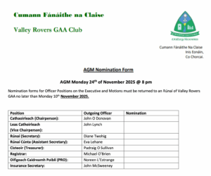 AGM on Monday, November 24th 2025 at 8pm in Innishannon Hall