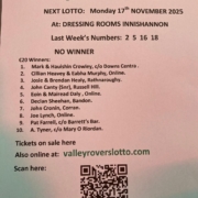 Next draw will take place on Monday, November 17th when the jackpot will be an amazing €13,000! Many thanks for supporting Valley Rovers GAA by playing the lotto weekly on: https:/valleyroversgaa.clubzap.com/categories/lotto/products