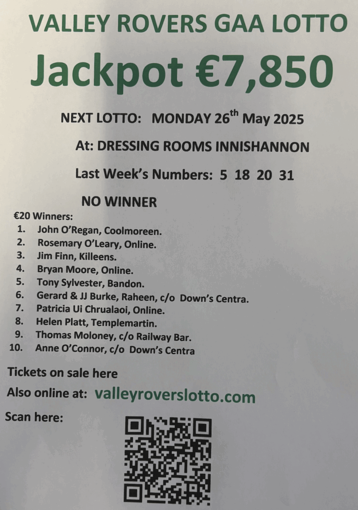 AGM on Monday, November 24th 2025 at 8pm in Innishannon Hall