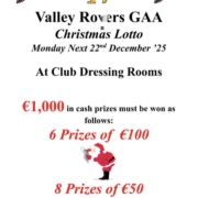 Valley Rovers GAA Christmas Lotto Draw – December 22nd!